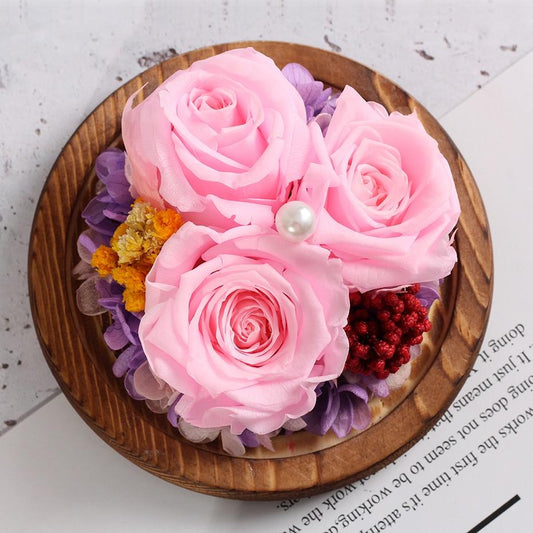 Eternal Rose Under Bell (Trio of Pink Flowers)