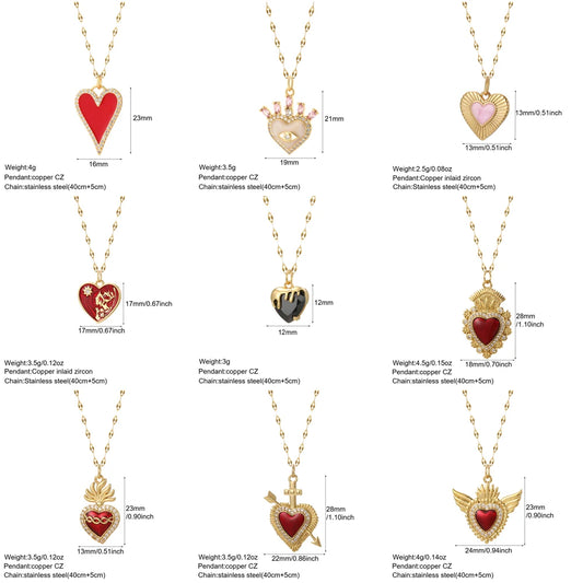 Gold Red Love Pendant Necklace - Heart Charm on Long Stainless Steel Chain