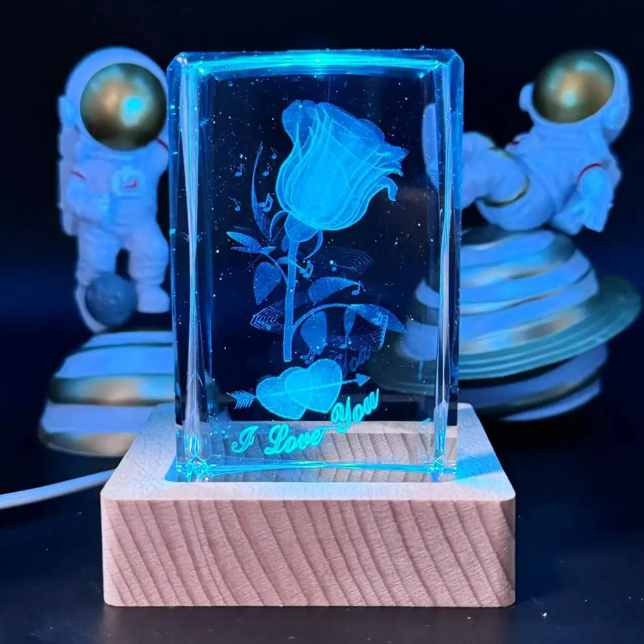 3D Crystal Rose Night Light - Unique Gift for Mom