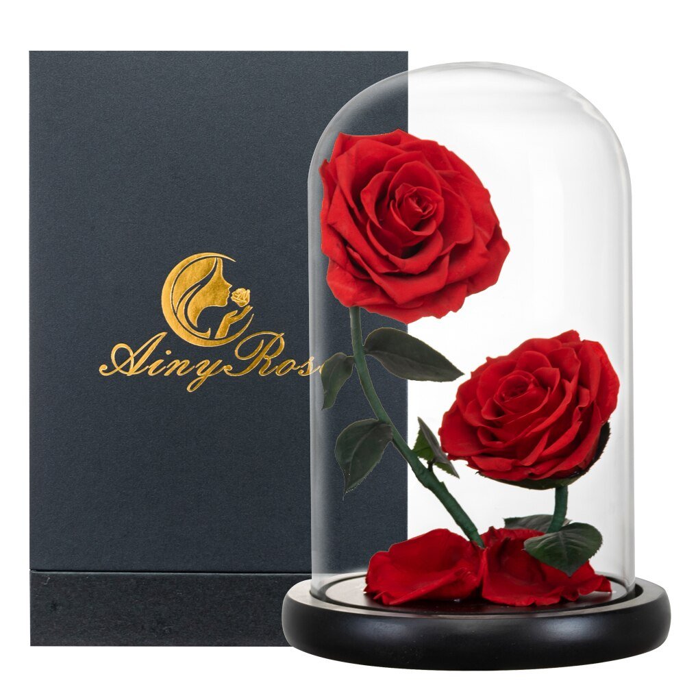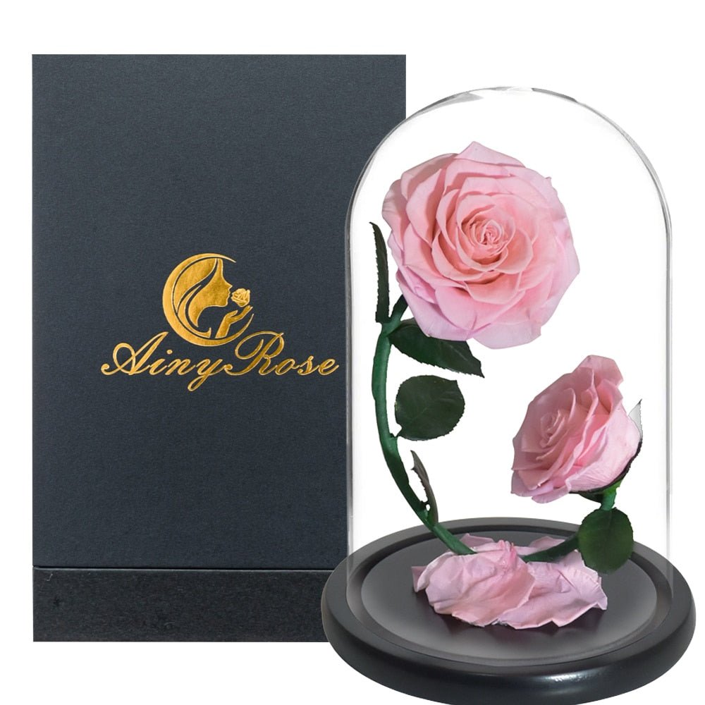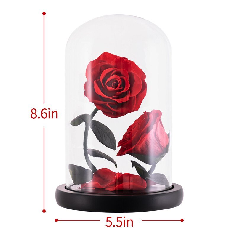 The prestigious duo of eternal roses under a glass dome is the perfect gift for special occasions such as Valentine’s Day, Mother’s Day, weddings, anniversaries, and more. Crafted with a real preserved rose, this eternal bloom retains its natural beauty forever. The glass dome adds a touch of romance and luxury to this unique piece.