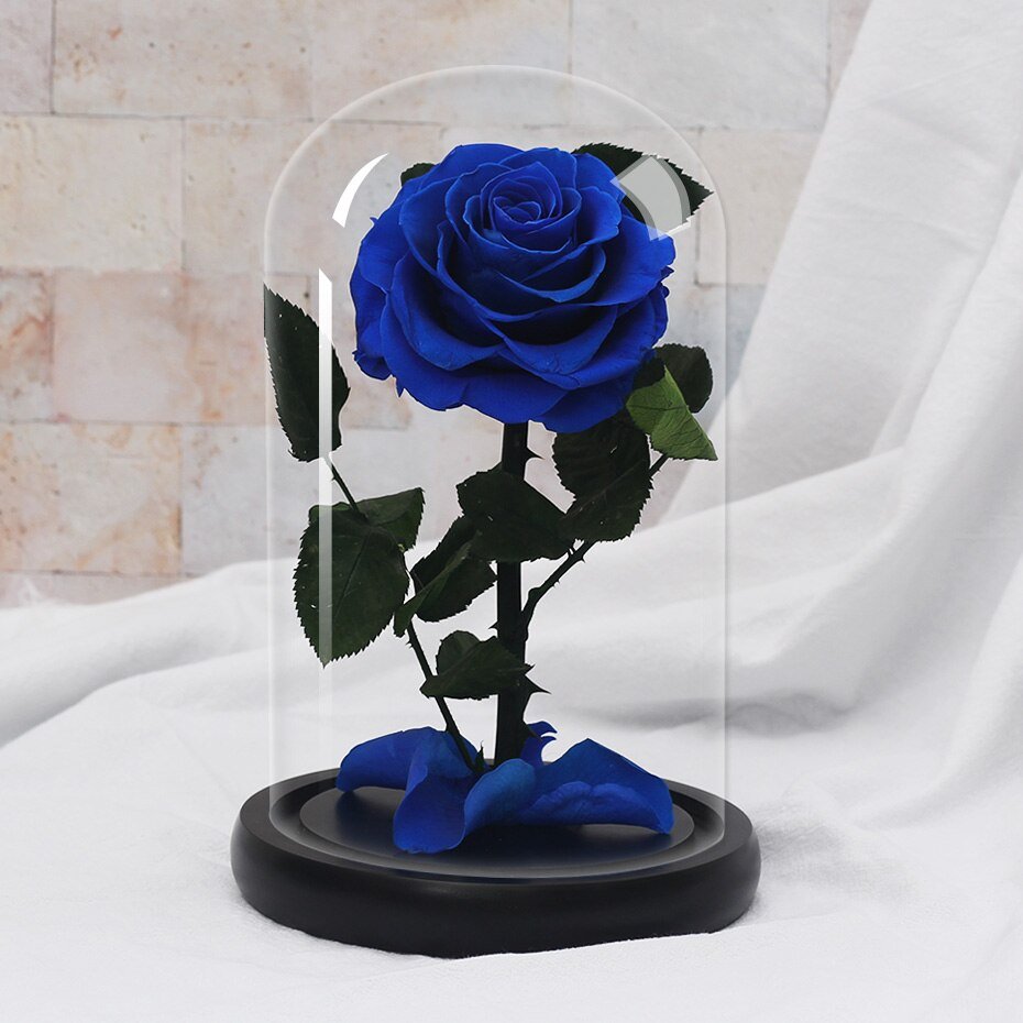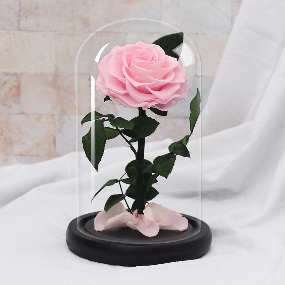 Description: Eternal Rose in Glass Dome by BEATEA is a timeless symbol of love and beauty. This exquisite piece features a preserved rose encased in a clear glass dome, providing a stunning display that lasts a lifetime. The base diameter of the dome is 14cm, with an overall height of 20cm.
