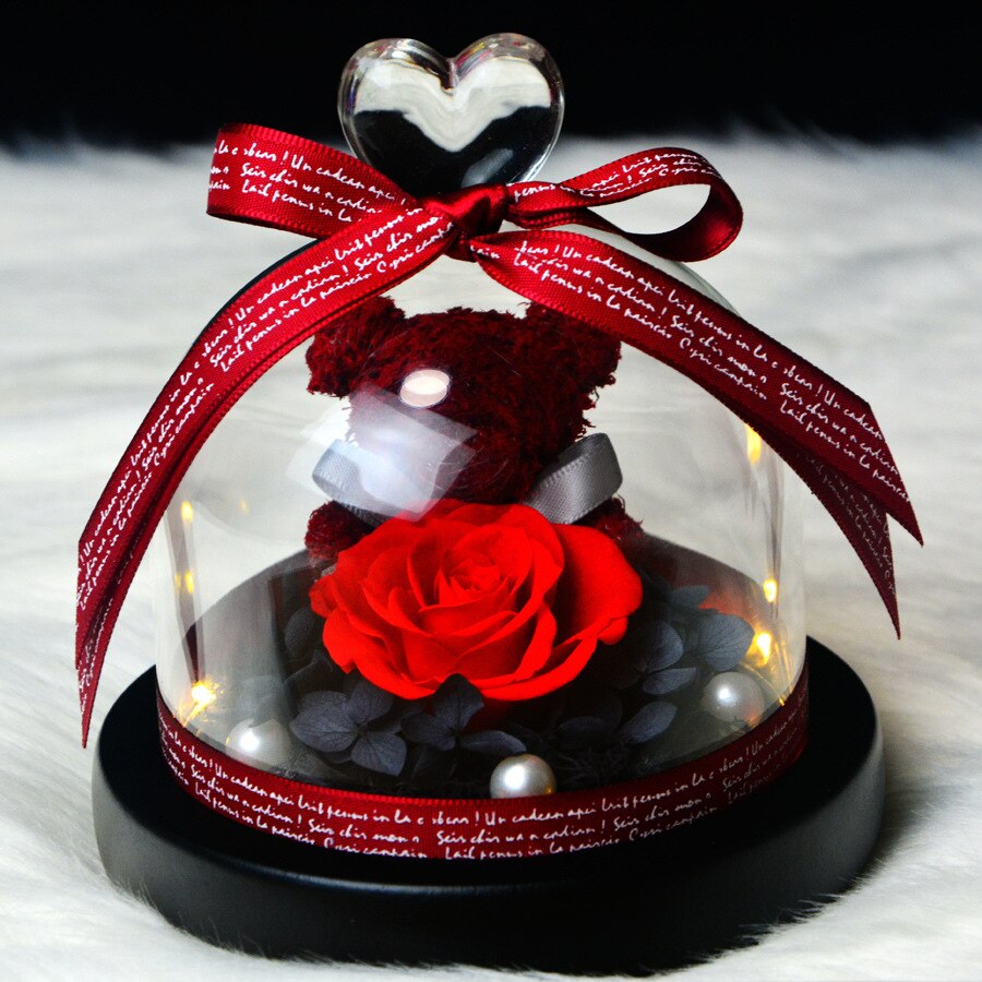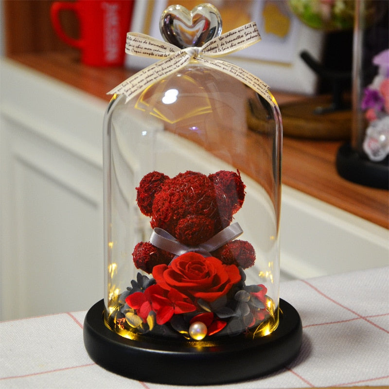 The item in question is a gift for Mother's Day, it is a teddy bear with an eternal rose in a glass dome, a perfect gift for special occasions such as Valentine's Day , a birthday or Mother's Day. The package includes a rose dome (batteries are not included in the package).