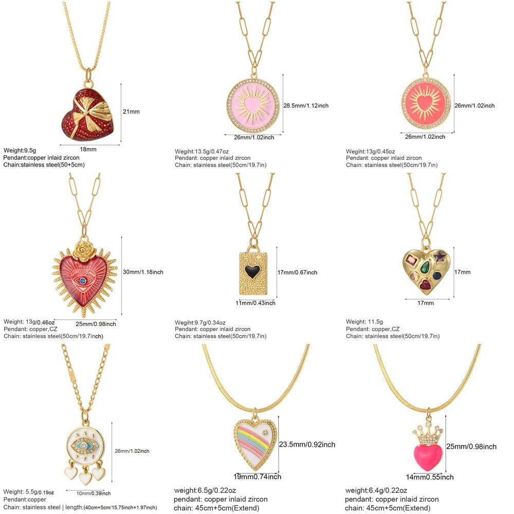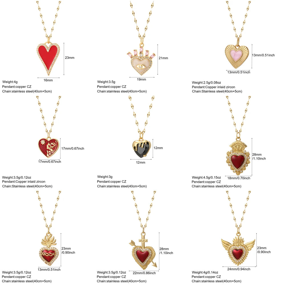 Description: This Cute Heart Pendant Necklace blends romantic charm with a trendy design. Crafted with a copper heart pendant adorned with pave zircon and complemented by a durable stainless steel O-chain, it's perfect for adding a touch of elegance to any outfit.