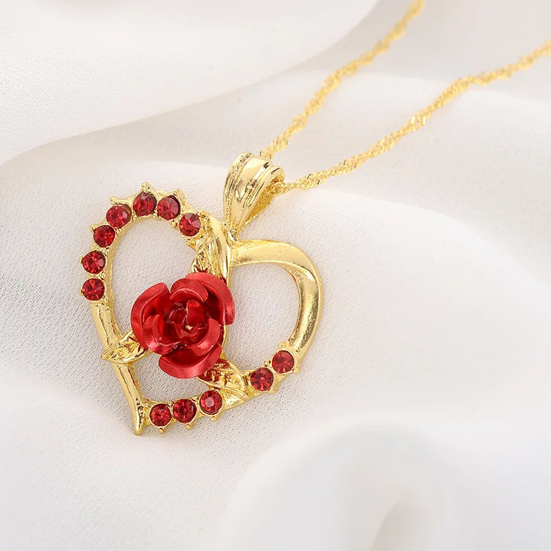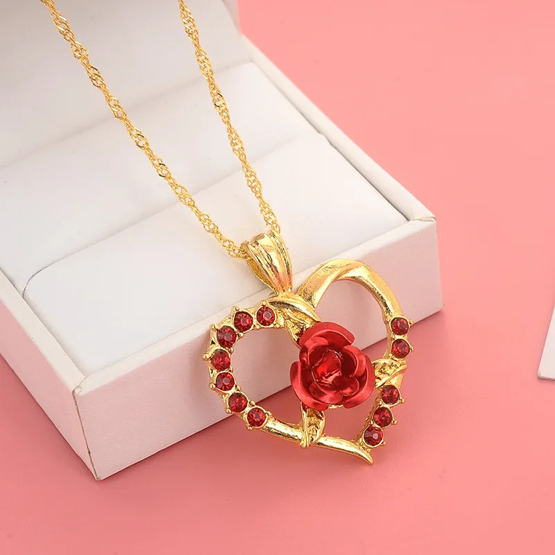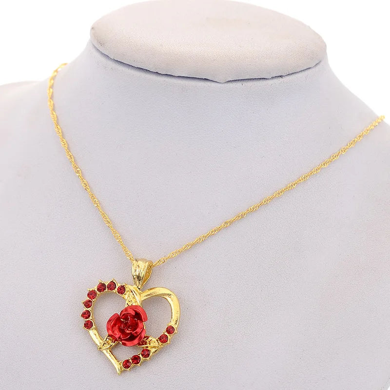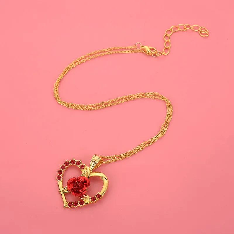 Rose Heart Necklace – Long Chain Pendant Jewelry for Women, Perfect Valentine’s Day Gift