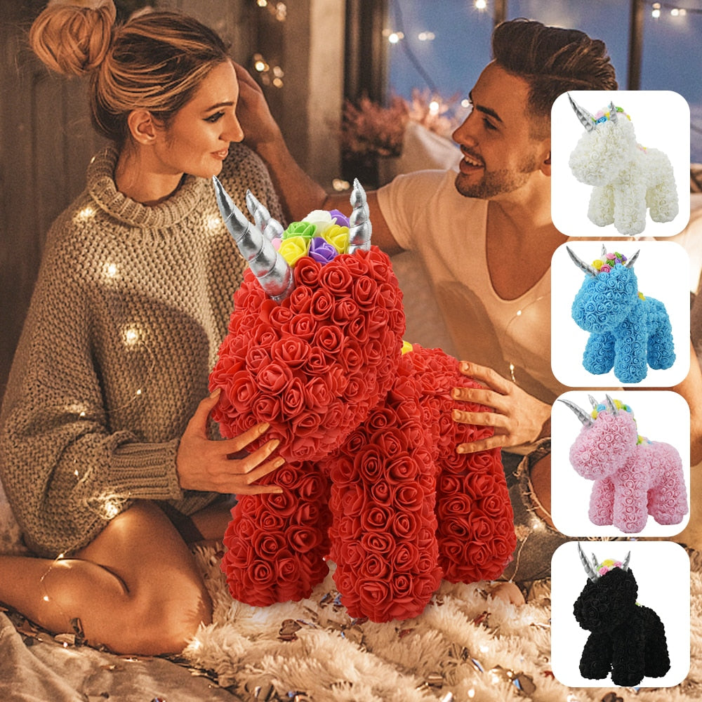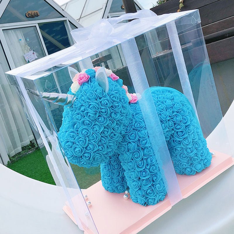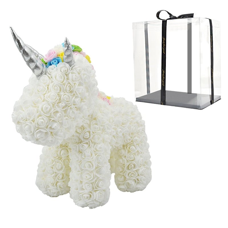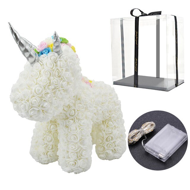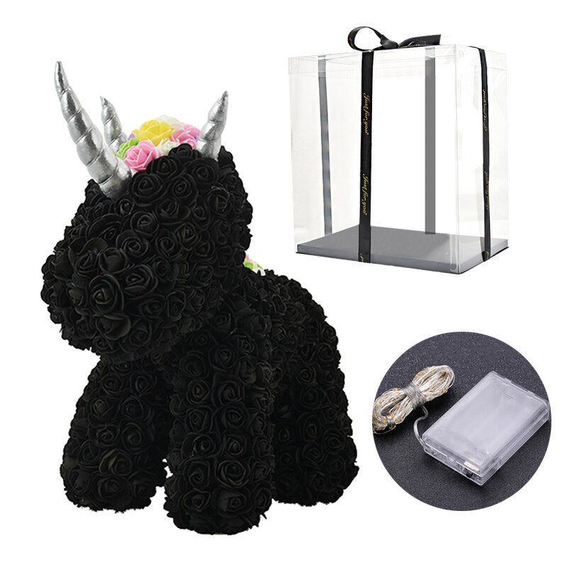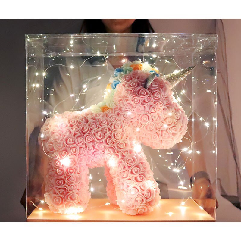 You probably know the eternal rose bears? Well there’s even cuter! Here is a pink Unicorn with a box + LED according to your choices.