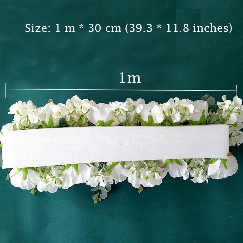 Transform your venue into a serene oasis with our stunning wedding arch flower. Available in white, pink, champagne, and dark rose, this wedding arch flower measures 1 meter long by 30 cm wide and can be customized to meet your needs.